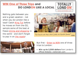 Mattlin Mandell has been planning, buying and creating digital media for Visit London’s North American marketing campaigns since 2004. Our recent campaigns have integrated a targeted blend of national and regional placements including banners, HTML emails, partner and dedicated newsletters, internet radio, SEM and a sweepstakes offer to successfully drive traffic to and increase subscribers on VisitLondon.com.